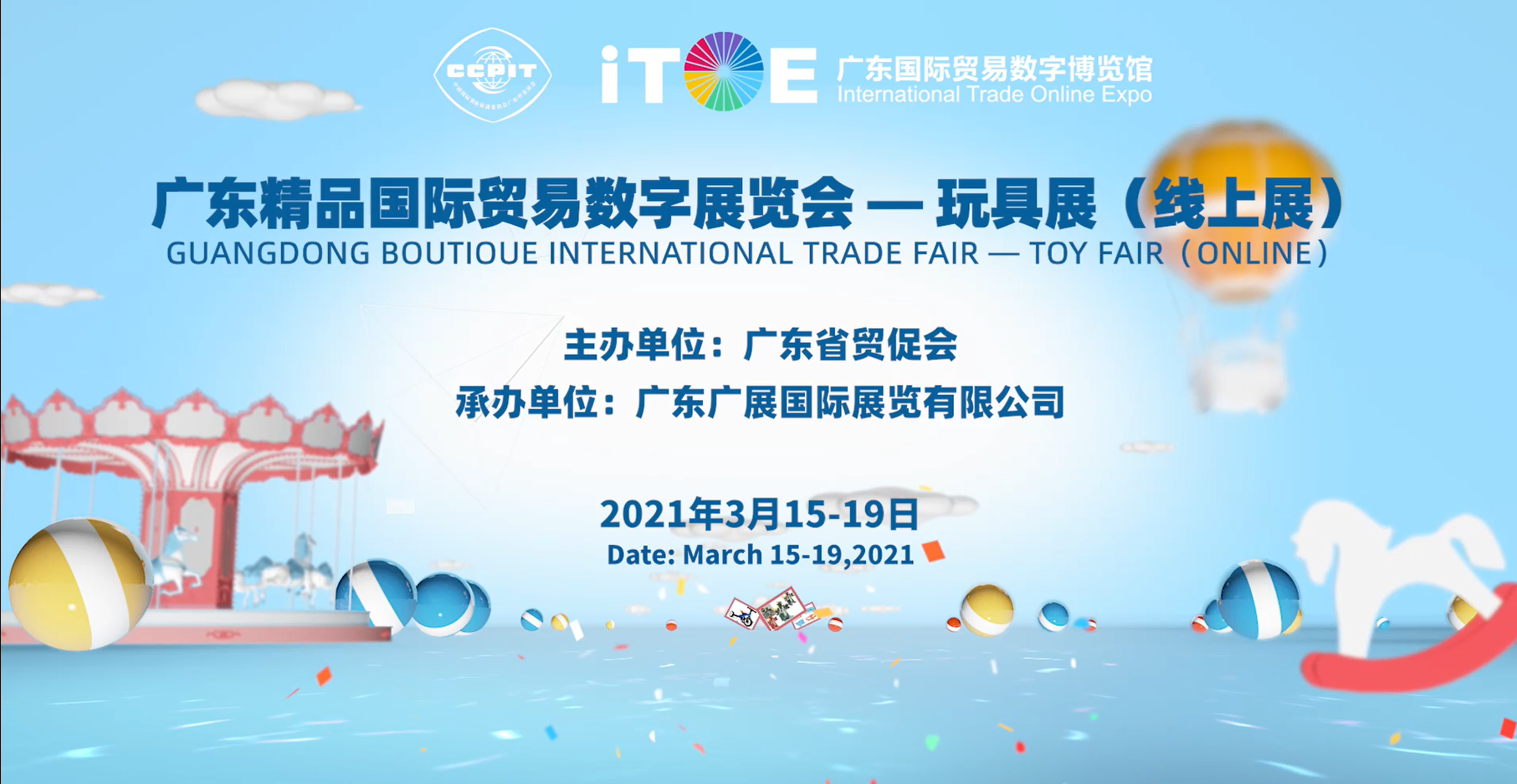 3月15日,由广东省贸促会主办的广东精品国际贸易数字展览会-玩具展(线上展)开幕,展会在ITOE广东国际贸易数字博览馆(网址:www.itoegd.com)连续举办5天,持续至3月19日。