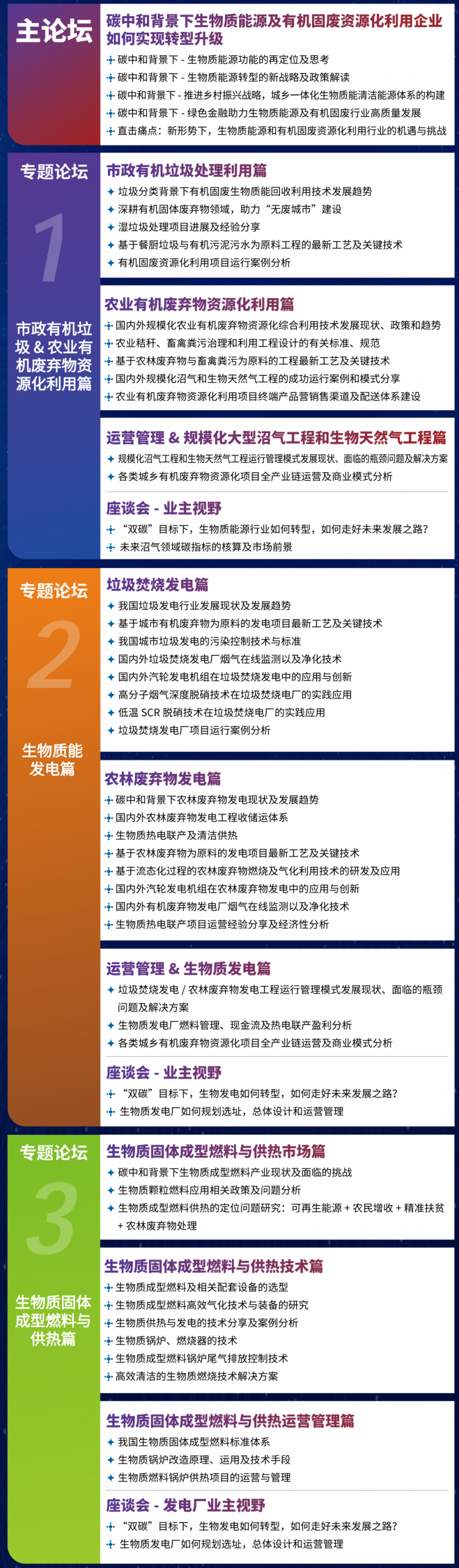 在碳中和背景下,对从事生物质能产业的我们,这是重大的挑战和极为难得的大好机遇。行业领袖们将如何及锋而试 , 抓住机遇,实现转型升级 ? 生物质能源领域企业如何适应行业发展做出调整,共同助力生物质能源与有机固废资源化利用?